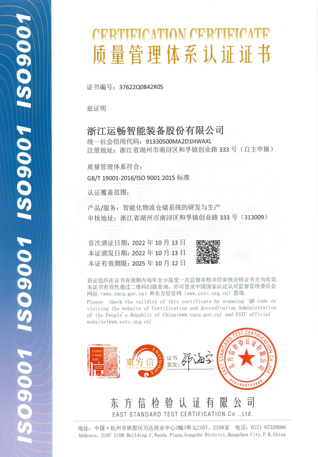 質(zhì)量管理體系認(rèn)證證書